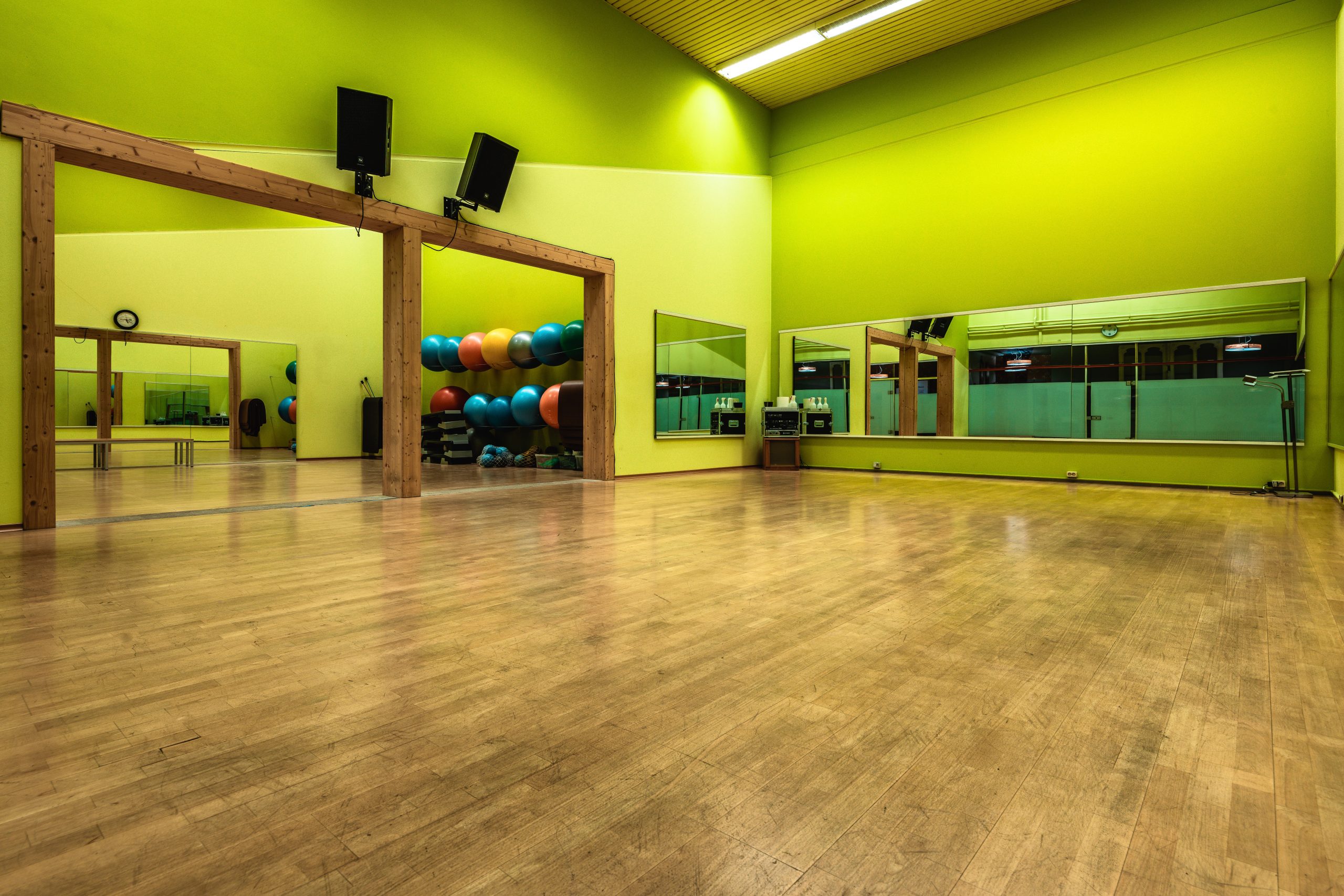 Unsere Reha Kurse finden in unserem großzügigen Reha Kursraum statt. Der leicht federnde Parkettboden schont deine Gelenke, und in den großen Spiegeln kannst du dein Training kontrollieren. Trainingsmaterial wie Bälle gibt es in ausreichender Zahl. Unsere Teilnehmer haben hier genug Platz zum auspowern.